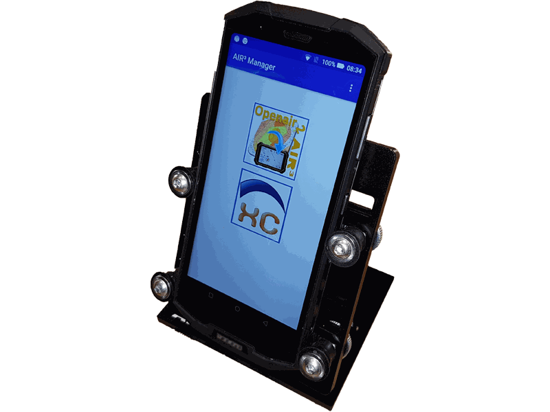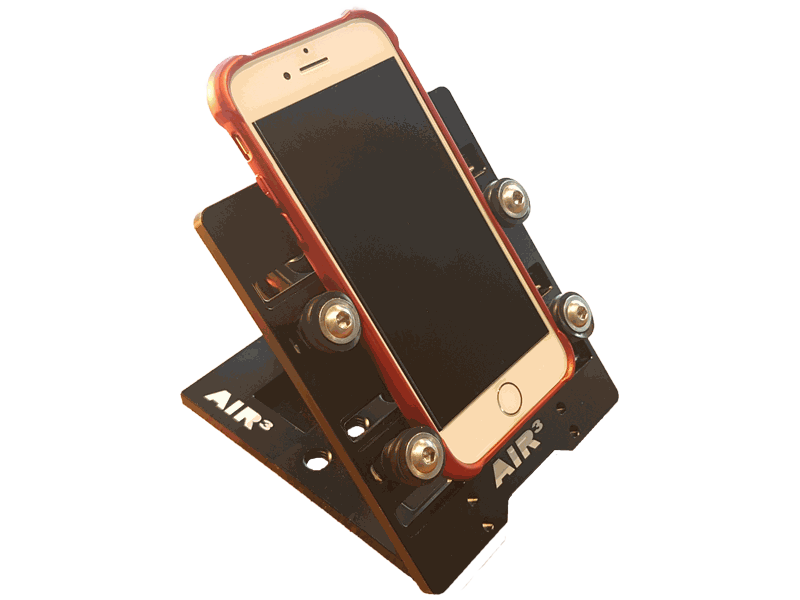 Robust support for any smartphone with articulated double head arm, Aluminum alloy. Seat plate, articulated arm, fixing plate.